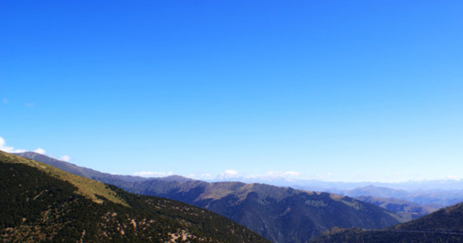 高尔寺山远眺巍峨雅拉雪山。高尔寺山是一座被忽略的美丽大山,垭口处平坦开阔,是雅拉雪山、贡嘎雪山、折多山的绝佳观景点。
