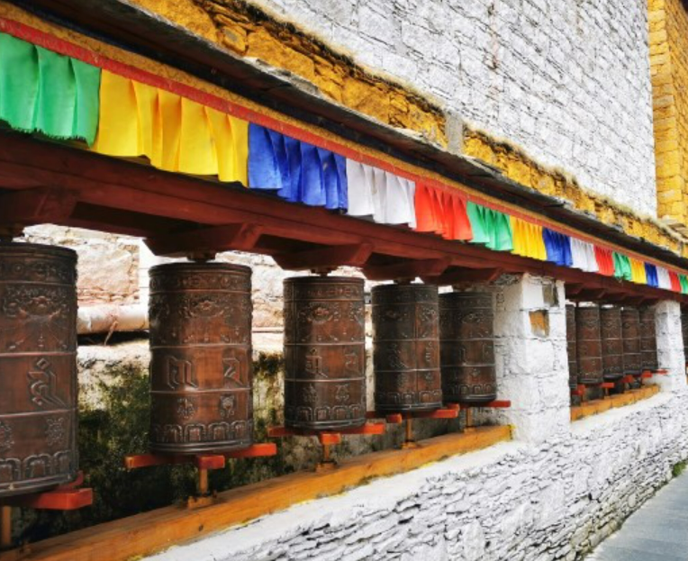 持明大师开山掘藏是羊年,所以每到羊年的农历四月,则是神山朝拜、转山的人比比皆是,热闹非凡。最为神奇的是在神山岩石上自然呈现出大小不同的六字真言:嗡、嘛、呢、拜、咪、啤以及木阳和月亮的图案,这等神奇之现象令游过此山之人嗟叹不已。持明大师和大译师比诺杂纳的修行洞等,其洞内时宽时窄,有形态各异的石笋、石柱及形如佛像的石人,神奇的景色,迷人的故事,让你留恋忘返。