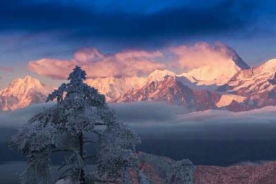 在四川的诸多雪山中,最高的山峰当属甘孜藏族自治州境内的贡嘎山,海拔高达7556米,被称为“蜀山之王”。贡嘎主峰周围林立着百余座海拔五六千米的冰峰,形成了群峰簇拥、雪山相接的雄伟景象。