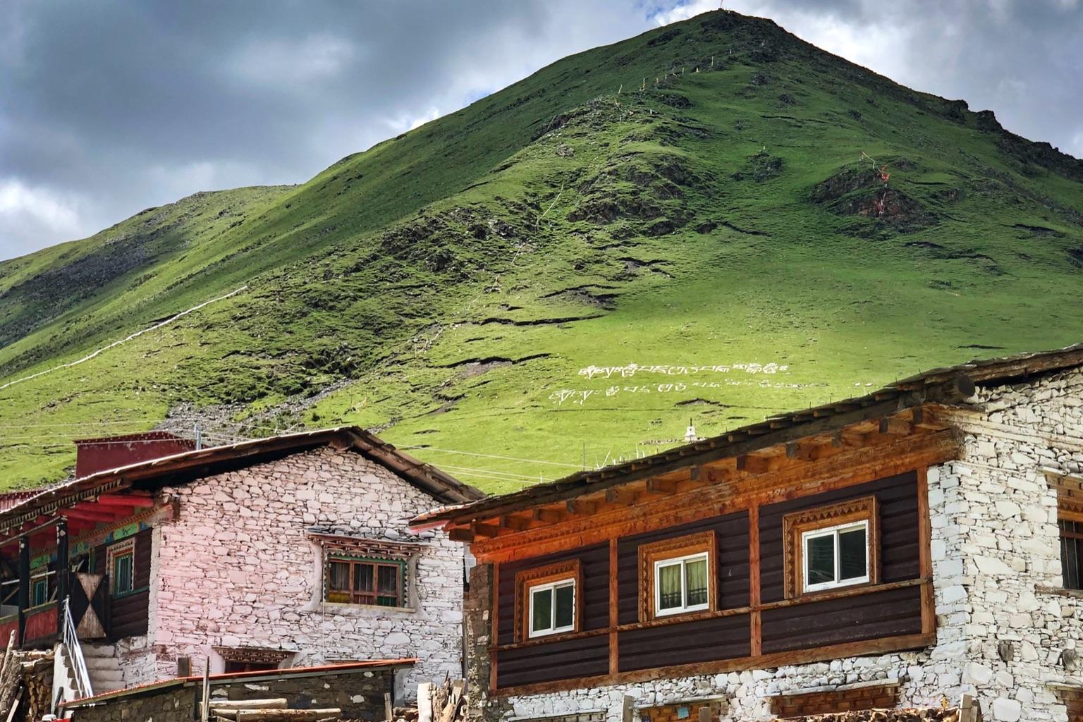 莫斯卡村是这高山牧场的居所,村子四四方方,被砖墙围了起来,如同一个坛城。村庄的布局据说是因为莫斯卡村民曾经以放牧为生,很多人家长年游牧在外,很少回到莫斯卡村,这样的修建方式是为了村中老人和孩子的安全,也为了相互方便照应。但后来听村中的老人说,起初这样建造村庄也是迎合佛教中对曼陀罗的一种解读。莫斯卡村的藏房比较简单,以红色和白色为主色,简单的色彩布局造就了与天地相融合的自然村落。
