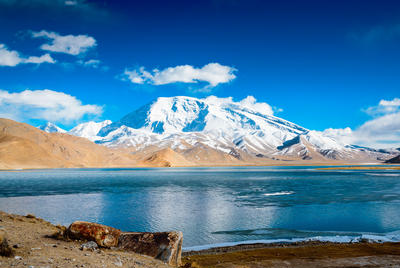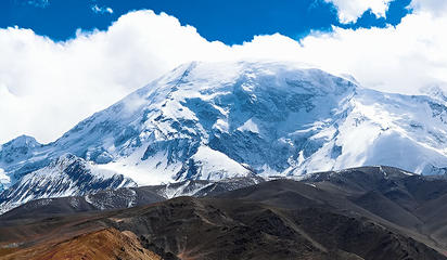 海拔7509米(登山界常说海拔7546米),其雄伟高大的身躯巍然屹立于帕米尔高原上。倒挂的冰川,犹如胸前飘动的银须,故有“冰山之父”的美称。而更多的人则是以朝圣者的虔诚来这儿领略慕士塔格峰与卡拉库勒湖相映成趣的湖光山色,或搜集深深蕴藏在慕士塔格峰下,卡勒库勒湖底深沉的文化底蕴。