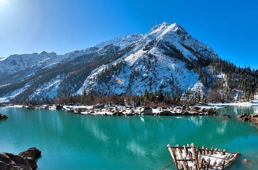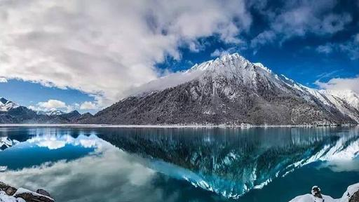 然乌湖周围雪山林立,著名的古来冰川像数百条巨龙般的冰舌一路延伸到湖面。太阳升起时,晶莹碧绿的湖水变得深蓝,远处的雪山、天空中漂浮的云朵和周围的森林统统倒映在湖面上,绕着湖走一圈,仿佛回到了梦中的童话世界。