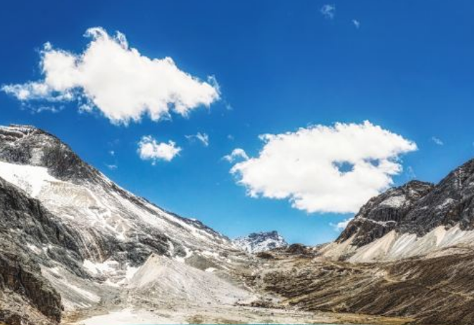牛奶海,又叫洛绒措,位于央迈勇神山脚下的山坳里,是一个面积不大状如水滴的古冰川湖。四周雪山环绕,湖水清莹碧蓝,湖畔则是一圈乳白色环绕,故称牛奶海。