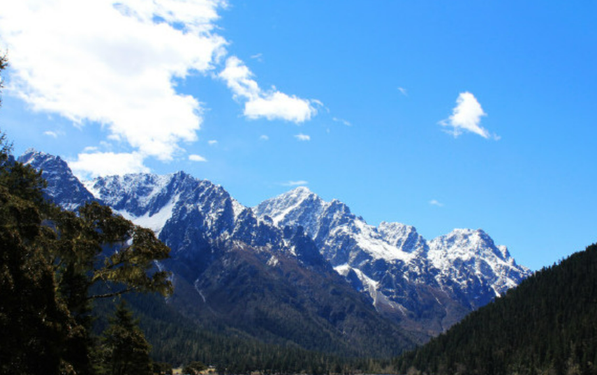 伍须海景区由山峰、原始森林、林中溪流,五花草甸、高山草甸与湖泊、奇树和各种珍稀动植物及独特的藏族风情组成。山上春、秋、冬三季均积雪,煞是壮观。北面的扎西普让大雪山则终年积雪,每当日出时分,金光沐顶,绚烂壮丽。