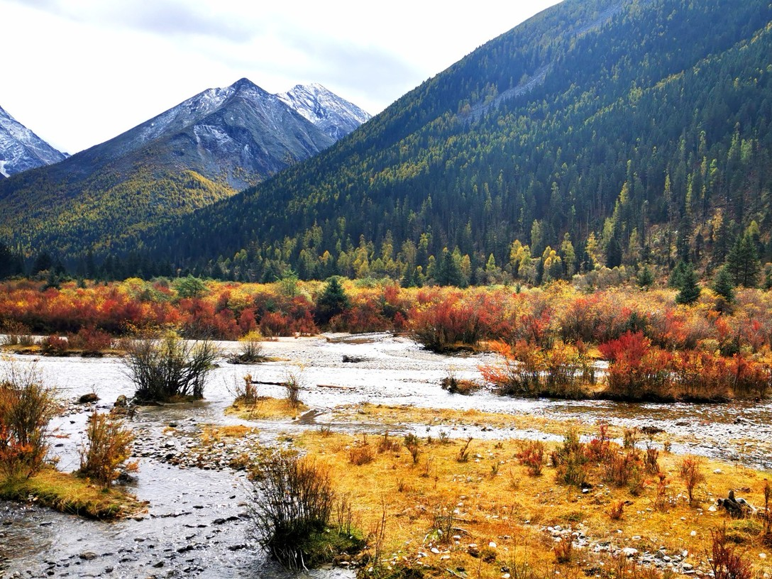 新都桥的这段路是国道318四川境内风光最美的一段路,主要特点是群山起伏海拔落差大、植物差异性大、气候变化快、道路峻美。沿途并没有突出的标志性景观,但10余公里的沿线都有很多人在拍摄,虽然春天的色彩感没有秋天强烈,但植被绿葱葱,许多野花竞相开放,充满生机与活力,给人希望。