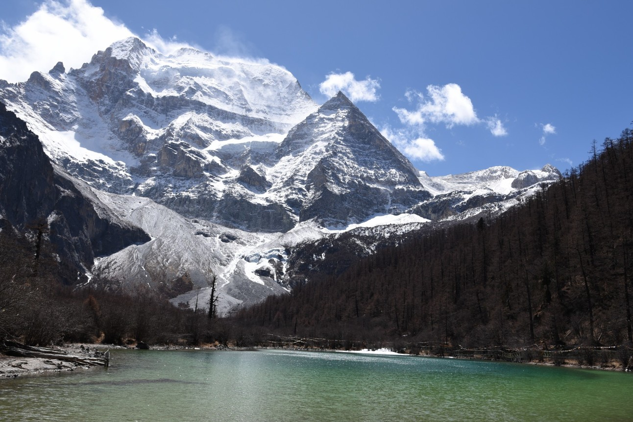 1、央迈勇,藏语意为“文殊菩萨”,位于四川亚丁自然保护区内,是“三怙主”雪山的南峰,在佛教中排在“三怙主”雪山之首。文殊菩萨在佛教中是有智慧的化身,雪峰像文珠师利用手中的智慧之俞直指苍穹,冰晶玉洁的央迈勇傲然于天地之间。神峰下由群册环绕着宽阔峡谷间,森林、草地、溪流和睦地各守一方,一派气势莽莽的自然景观。