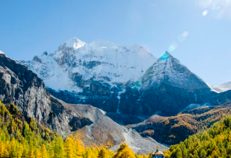 仙乃日雪山海拔高度6032米,是三怙主雪山里最高的一座,也是亚丁地区的最高雪山。仙乃日雪山巍峨伟丽,雄剑如削,直插云霄,峰名意为“观世音菩萨”,佛位排在第二位。周围是冰蚀峰林地貌,冰川和冰川遗迹及高山湖泊,西对北斗星,佛道两家都把北斗星为吉祥之星。其次整个雪山是个环型冰斗下斜造型,所以我们从两侧观看时,山峰始终面朝着我们。