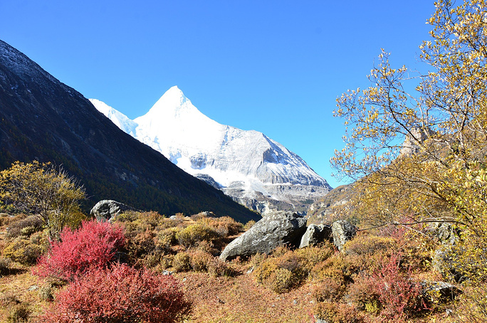 央迈勇藏语意为“文殊菩萨”,位于四川省凉山州木里藏族自治县和甘孜州稻城县的交界处。是“三怙主”雪山的南峰,海拔高度为5958米,在佛教中排在“三怙主”雪山之首。
