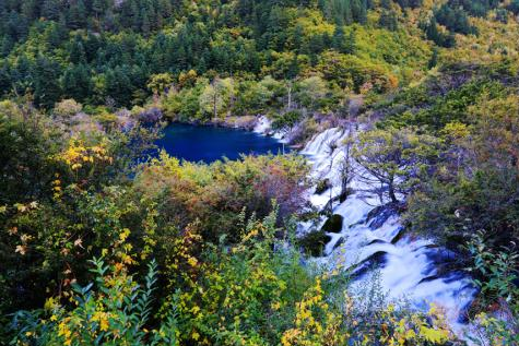从诺日朗瀑布再往南,九寨沟景区观光通道一分为二。向正南方向纵深而去是则查洼沟,沟长17.8公里,是九寨沟现在开发出来最长的一条沟全长18公里。途经季节海、五彩池,最后到达海拔3100米的长海。