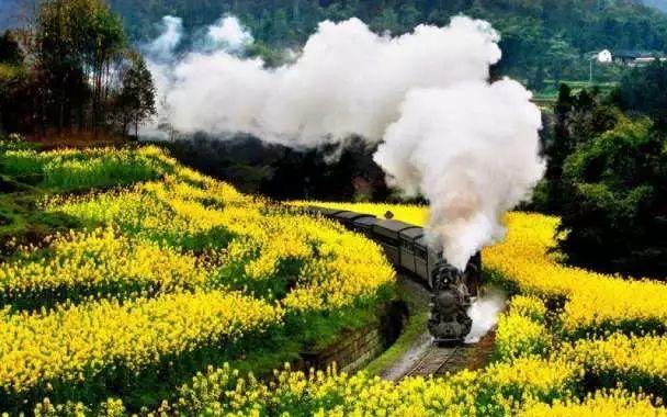 景点是唯一可以把火车和水库一起收入眼帘的地方。站在亮水沱半山坡的观景台上,看小火车从一线天形状的峡谷中穿出来,跨越几十米高的堡坎,在青山绿水的映衬下分外美丽。有的朋友可能要问,这段路当初为什么要修成堡坎而没有架桥?除了因为架桥成本高、难度大之外,更重要的是这里靠近亮水沱刚才我们看到的一线天,把“一线天”挖出来的土运来填堡坎,一边不用架桥,另一边还少建了一个隧洞,真是一举两得的好办法。,小火车观光专列要在此处为游客表演蒸汽机车喷汽。如果碰上阳光和温度适宜的时候,有缘的朋友还能象看峨眉山金顶佛光一样看到小火车制造的人工彩虹。