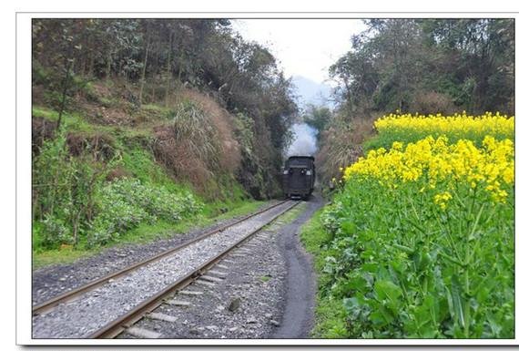 菜籽坝,驱车30分钟到嘉阳矿山公园坐蒸汽小火车徜徉在油菜花田,火车至蜜蜂岩下车,徒步5公里,边走边照相到菜籽坝站(那里有一农家,豆花味道非常好).