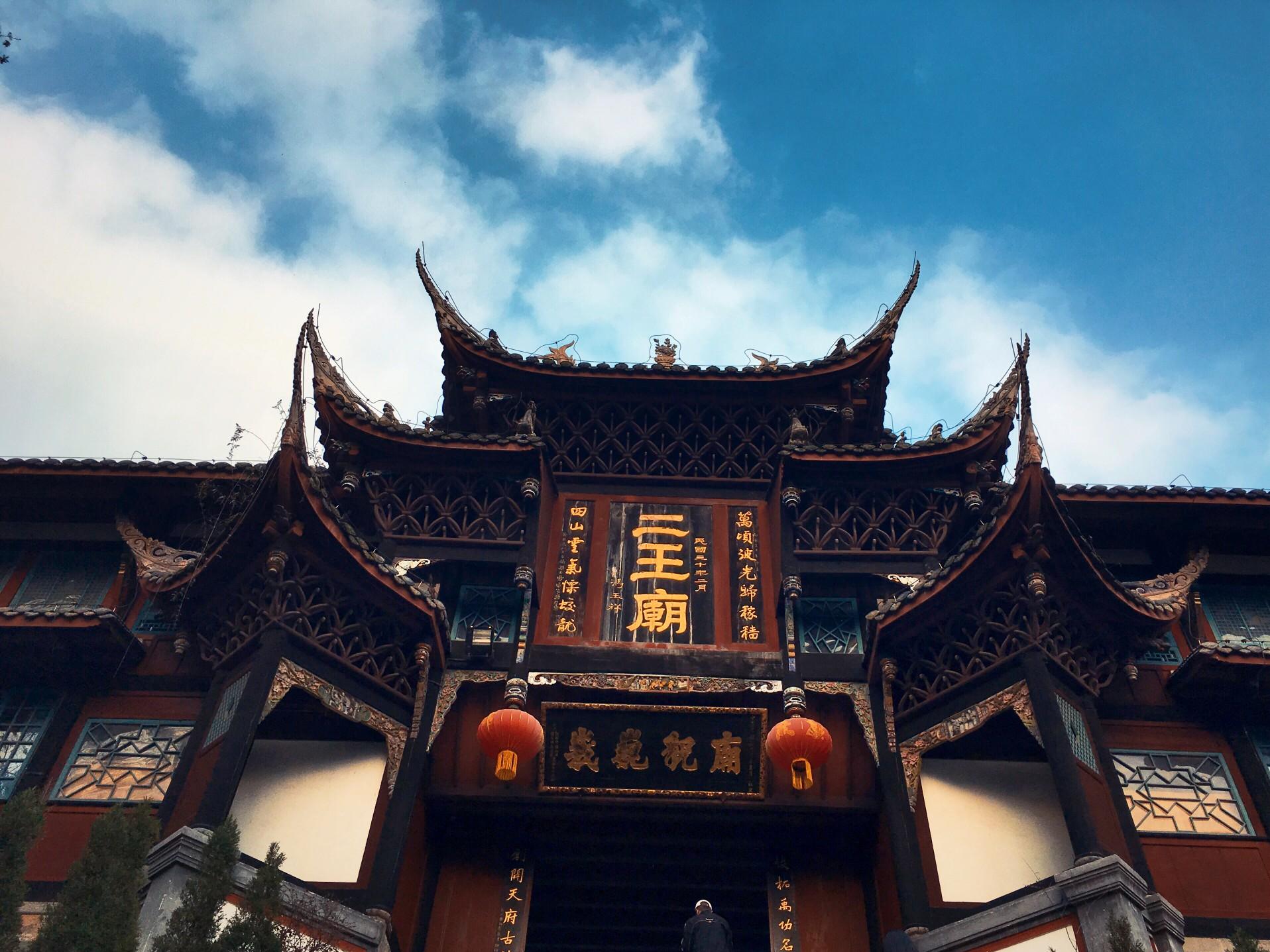 2、二王庙:二王庙位于四川省成都市都江堰市百花岭路,坐落于都江堰岷江东岸的玉垒山麓,是纪念中国都江堰的开凿者、秦蜀郡太守李冰及其子二郎的祀庙。二王庙是世界文化遗产都江堰的重要组成部分,初建于南北朝,初名崇德祠,清以后改用今名,是四川的游览观光胜地。每年农历6月24日至26日都会举行以李冰父子为主题人物的庙会活动。