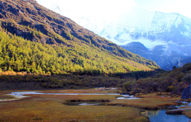 洛绒牛场也是通往五色海、牛奶海的必经之地(单边步行约3.5小时左右)。另外小转神山仙乃日也要经过这里(由冲古寺出发,经洛绒牛场绕仙乃日转一圈,全程20公里)。