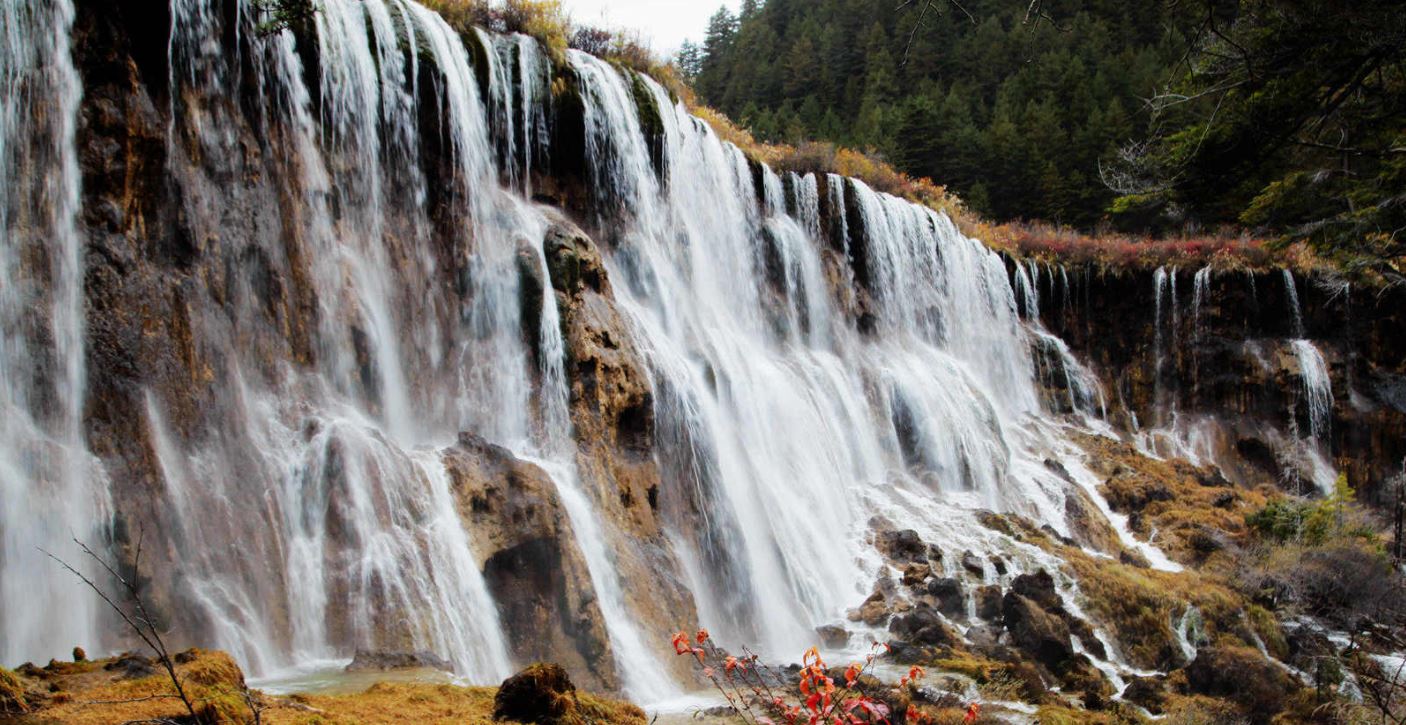 秋季时,瀑布的三百米飞流在秋色、云雾的衬托下,化成了一幕波澜壮阔的画面。