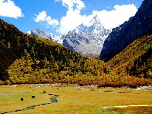 稻城亚丁风景区位于四川省甘孜藏族自治州稻城县香格里拉镇境内,国家5A级旅游景区,国家级自然保护区,是中国香格里拉生态旅游区的核心,集雪山、冰川、海子、草甸、森林等高原风光于一身,被称为“香格里拉之魂”“最后的香巴拉”,因景区内有小村亚丁而得名。