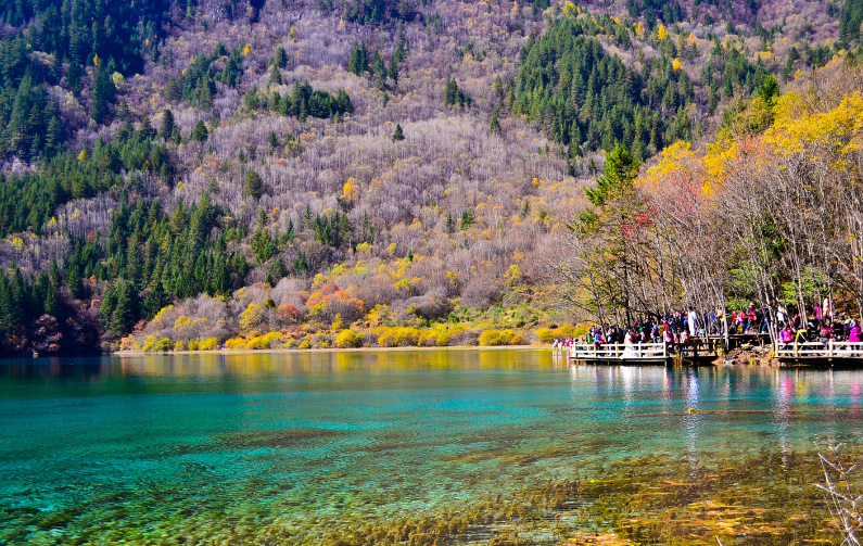 3、在九寨沟景区内,有绿色环保观光车或者选择在景区内的栈道步行。连接九寨沟和其它各景区还可以