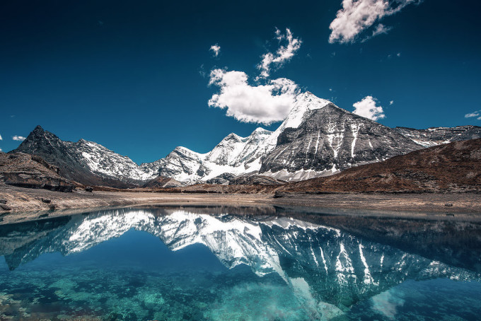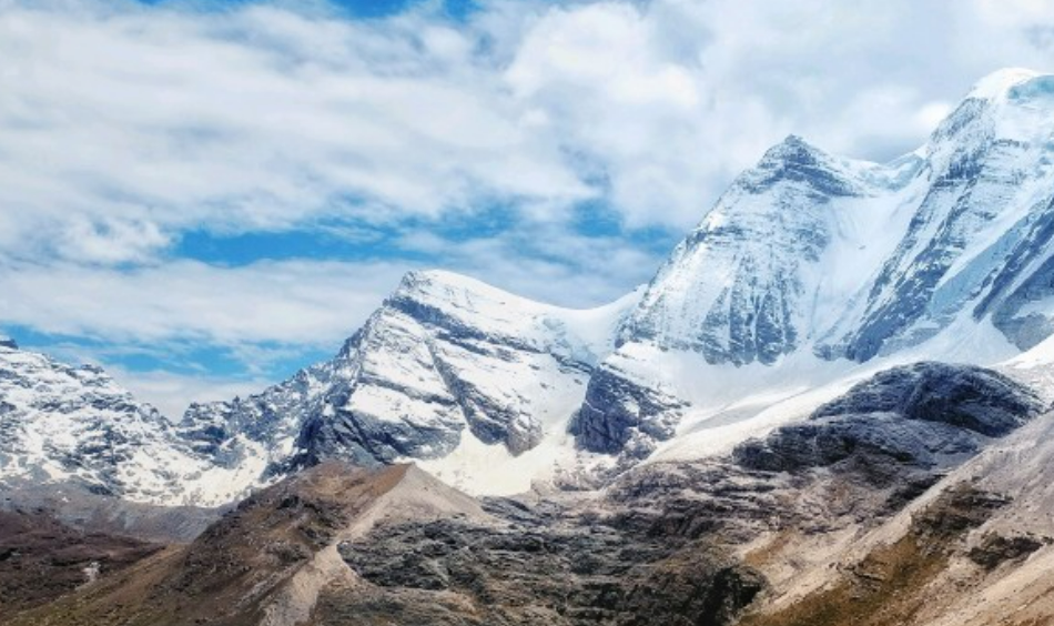 央迈勇,意为“文殊菩萨”,在佛教中是智慧的化身,是三座雪山的南峰,佛位第一,海拔高度为5958米。