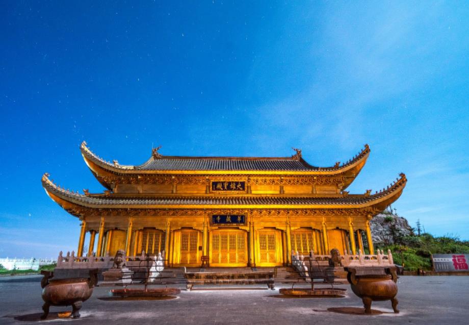金顶金顶是峨眉山的山顶,金顶上的四面十方普贤菩萨金像,是众多游客来峨眉山的必游之地。这里海拔3079米,除了高达48米的铜制十方普贤像外,金顶还有一座华严寺,可供信众祈福礼佛。金顶的四面十方普贤金像是世界上较高的金佛,也是普贤菩萨的第一个四面十方艺术造型。