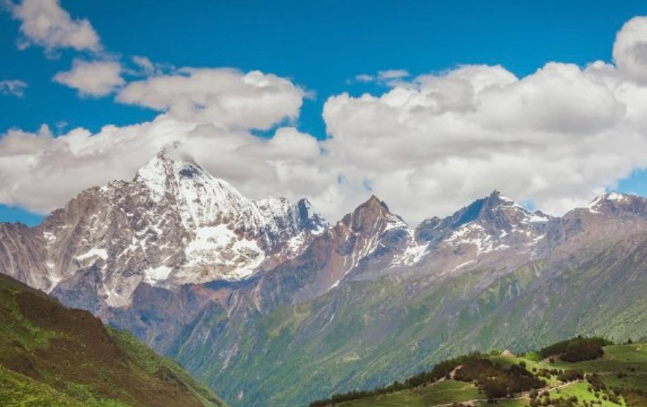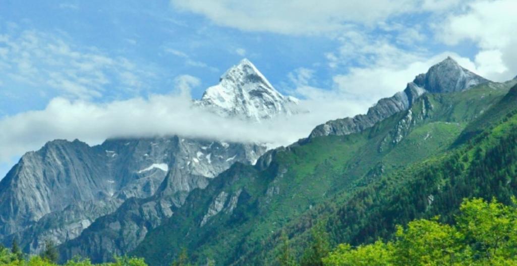 二姑娘山,位于四姑娘山风景名胜区的南边,与大姑娘山相邻。地区由四山三沟组成,坐落在阿坝藏族自治州小金县和汶川县交界处,是横断山区邛崃山脉的高峰。二姑娘山每到夏季,满山遍野都是绿树翠草,在山上能看见生活在青藏高原峡谷地带的珍稀动物,还能找到许多产于藏区的珍贵中药材。二姑娘山山尖削险峭,峰顶狭窄,且终年积雪。