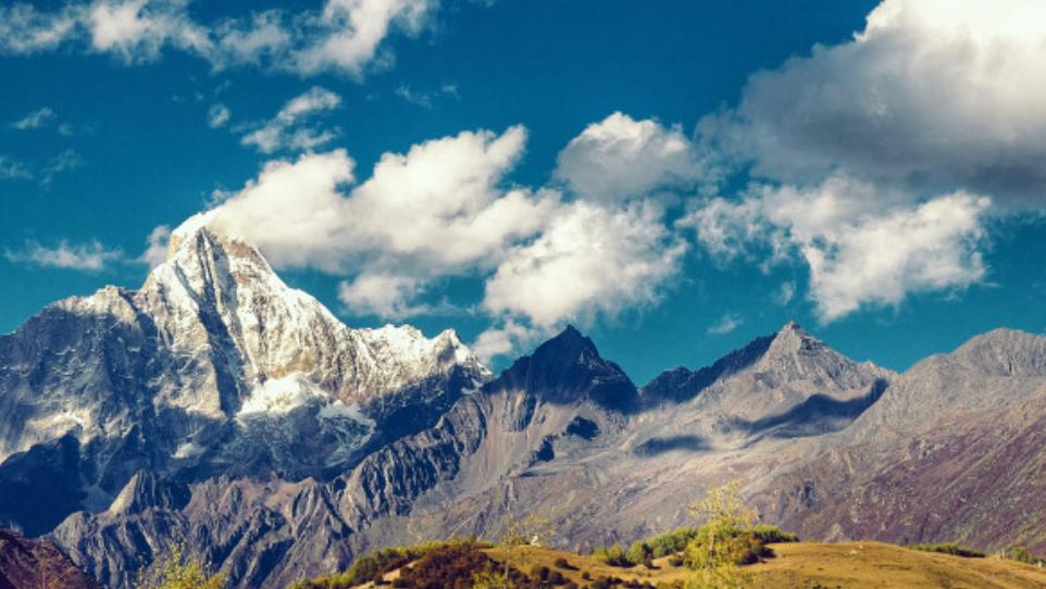 大姑娘山,位于四姑娘山风景名胜区的最南边位置,4000米以下多为高山草甸,低处有灌木森林,野花遍地,随处可见牧民放养的牦牛与马,山上有大如碗盆的野生菌但不易找到,大姑娘山4000米以上则寸草不生,乱石如削,坚硬无比。夏季山顶有少量积雪,10月至次年4月下雪,山上积雪可过膝。