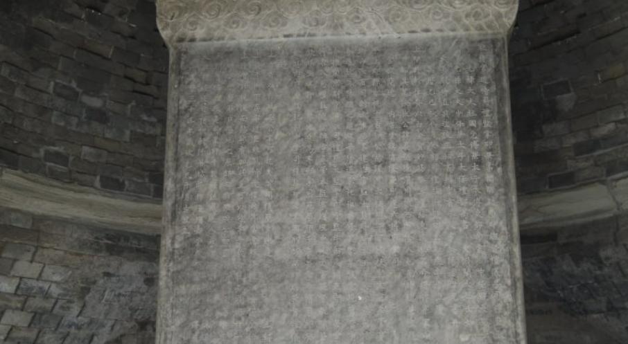 碑红砂石质,原立于广汉市西门外万人坟前,1934年移至公园内,1956年建亭保护。坐北向南。碑高2.1米,宽1米,厚0.20米。碑首刻有龙文,额题“圣谕”。碑文楷书竖排阴刻“天有万物与人,人无一物与天,鬼神明明,自思自量。”字径0.10米,字距3厘米,落款为“大顺二年(1645)二月十三日”。碑阴原为阎锡命的圣谕六言注释,后被南明平寇将军,于隆武二年(1646)改刻为万人坟碑记。
