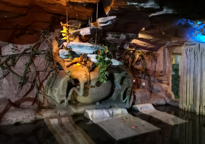 生态温泉泡汤区被环形喷泉廊所环绕,一条清澈水道蜿蜒如河流,贯穿整体,婉如置身于闽南热带庄园于其中。生态温泉泡汤区有各具特色、不同功效的室内和户外温泉生态泡池三十多个,美容、保健、美体、鱼疗、养生的泡汤池,掩映在热带雨林之中,腾腾上升的温泉水气都会让你幻如置身梦境,享受一人一天堂、一人一世界的至高体验。