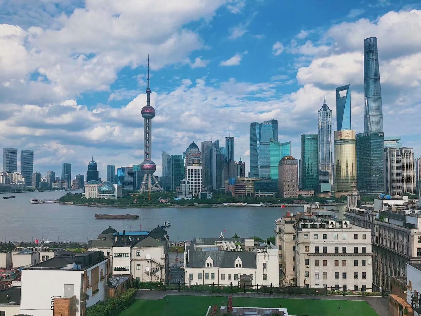 5、下了船往上走到滨江公园可以看对面外滩的景色