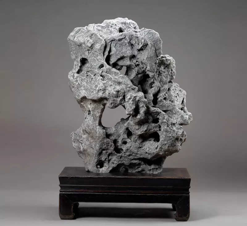 中国文化中自古就有欣赏天然石的审美传统,陈列于书房雅阁的文房供石更为历代文人士大夫阶层所青睐。胡可敏女士捐赠的这批文房供石以传世古石为主,不仅有昆、英、灵璧、太湖等经典石种,也包括多种地方石种和陶、铜、玉、木等其他材质的仿石清供,多有原配或旧配座架,一些供石上还有前人题刻,极富观赏和收藏价值。