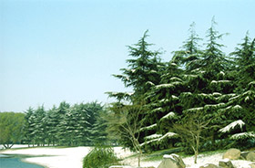 位于公园东北部,为全园地势最高处,地形起伏较大,呈直角放射状,面积约4000平方米,整个景区遍植雪松1700余株,形成一片蔚然壮观的雪松林带。一阵风过,松涛阵阵,气势磅礴。两峰之间,峡谷幽幽,人站在谷底,仰天而啸、声音四壁回荡,更显得宁静与自然。夏日至此,呼吸清凉,热念俱消。登至高处,可饱览全园诸景,另有一番境界。在这里不仅可以领略松海波涛的宏伟,还可以享受到单株雪松的优美姿态,更是久居闹市者休闲、避暑的好去处。