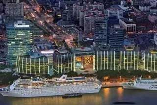 2、上海上港邮轮城,4A级上港邮轮城,这里曾经是拥有160年历史的上海码头门户,是上海开埠以后的经济贸易中心,如今是坐拥上海天际线的北外滩滨水综合体,1200米璀璨滨江岸线,浦江全景尽收眼底。在这里有一面文化长廊玻璃墙,在上面用图片和二维码展示了“码头衍变”、“西学东渐”和“名人踪迹”的故事,这里不仅可以领略到浦江两岸的风景,也能了解浦江沿岸的百年历史。北外滩滨江绿地,拥有一滴水、彩虹桥、音乐之门三大特色景观,被称为“最美江景步道”。