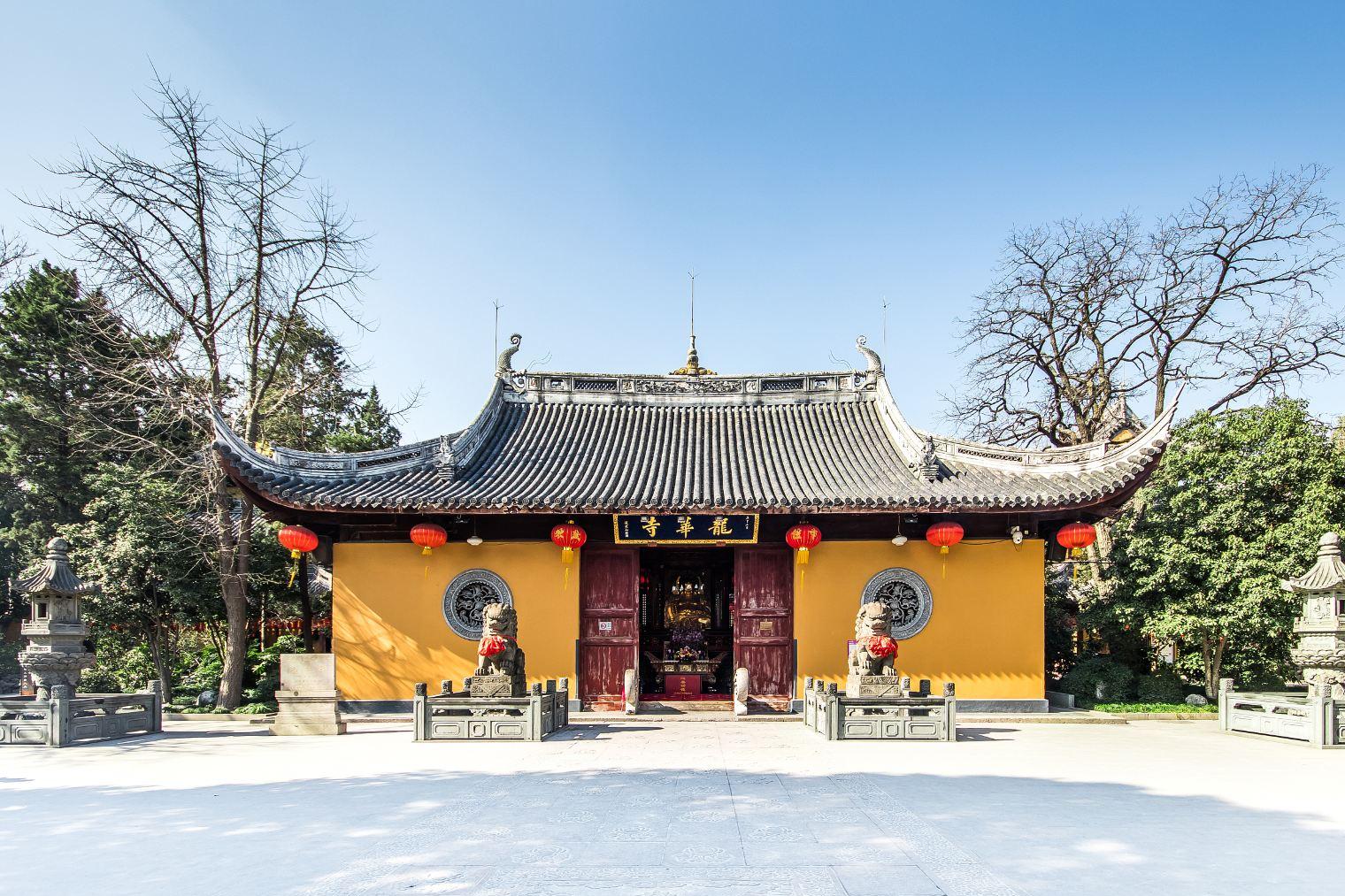 龙华寺是上海地区历史悠久、规模很大的古刹,距今已有1700多年历史,寺名来源于佛经上弥勒菩萨在龙华树下成佛的典故。龙华寺的中轴线上由南到北依次为弥勒殿、大雄宝殿、三圣殿、在封闭庭院内的方丈室、藏经楼,共六堂。大雄宝殿庄严肃穆,正面是文殊、普贤等三尊金身,背面是精美的海岛观音像,大殿两侧沿壁刻着二十诸天和十六罗汉。