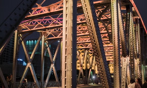 上海外滩白渡桥主要是欣赏两岸风景。赏桥需站在远处观全景,又可立于桥上亲密接触,同时欣赏苏州河两岸风景;幸运的话也许还能看到新人玩摄影,趁红灯无车的空当,在桥上拍下个性又独特的婚纱照。