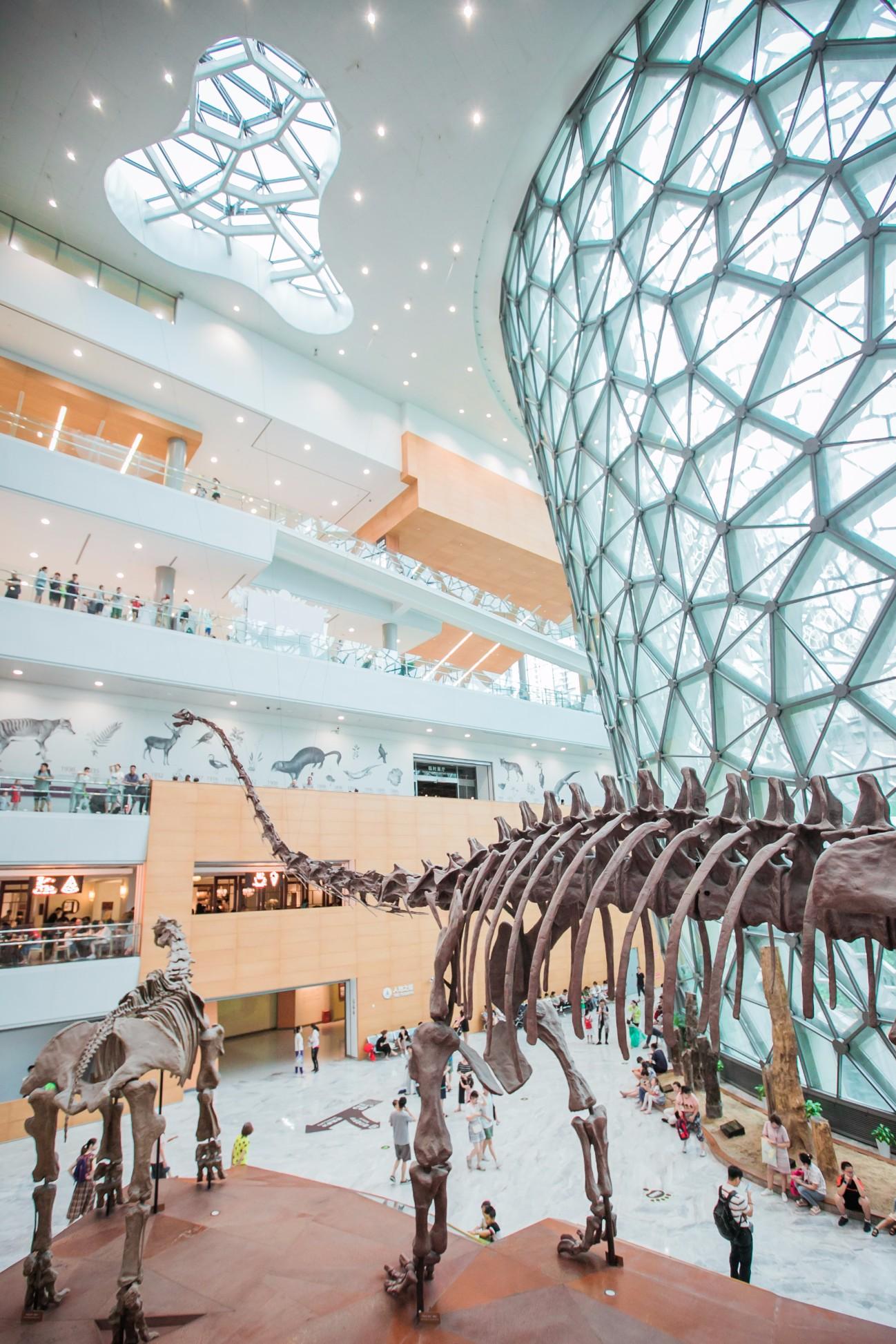 上海自然博物馆以“自然·人·和谐”为主题,通过“演化的乐章”、“生命的画卷”、“文明的史诗”三大主线,呈现起源之谜、生命长河、演化之道、大地探珍、缤纷生命、生态万象、生存智慧、人地之缘、上海故事、未来之路等10个常设展区及1个临展厅、4D影院、探索中心等配套功能区域。