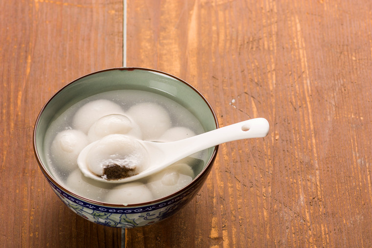 这里的汤团有鲜肉、豆沙、芝麻和枣泥四种口味。