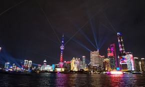 上海东方明珠广播电视塔坐落于浦东新区陆家嘴,位于世纪大道,上海东方明珠广播电视塔毗邻上海国际会议中心,隔江与外滩万国建筑相望。该塔高约468米,承担上海6套无线电视发射业务,并集都市观光、时尚餐饮于一体,于1995年被列入上海十大新景观之一。