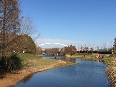 有塑胶跑道、休息的座椅。安静人少,没人跳广场舞,可以安静地走路,看平静的河面,看飞鸟掠过。
