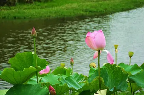 荷塘里,羞答答的荷花在静悄悄地开,荷花千姿百态,紧紧依偎着碧绿滚圆的荷叶,在轻柔的雨丝沐浴下,显得更加清秀、雅洁、妩媚、可爱了。