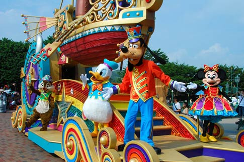 如果要看尼克,米奇,米妮,高飞等明星,站在马路的外圈。如果要看跳跳虎,鸭鸭,奇奇蒂蒂,黛丝等明星,站在马路的内圈。其他明星类似于巴斯光年,草莓熊,朱迪,胡迪等明星,站在马路两边都可以看得到的。
