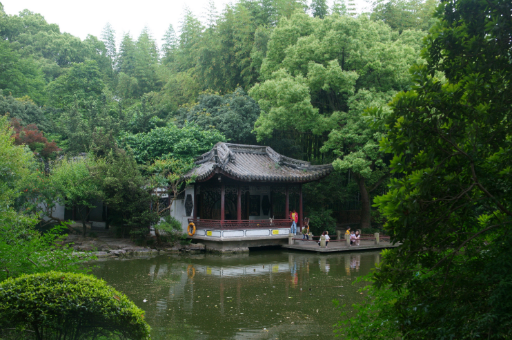 五、汇龙潭公园出嘉定孔庙,跨过宋淳佑年间的古桥宾兴桥,就到了汇龙潭公园。公园因前面的汇龙潭而得名。汇龙潭于明万历十六年(1588年)疏浚,相传因有五条河流交汇于此,形如五条长龙蜿蜒伸展之态。