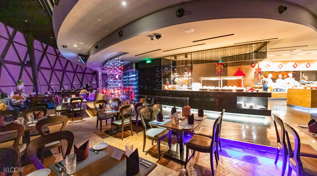 亚洲最高的旋转餐厅。其营业面积为1500平方米,可同时容纳350位来宾用餐。