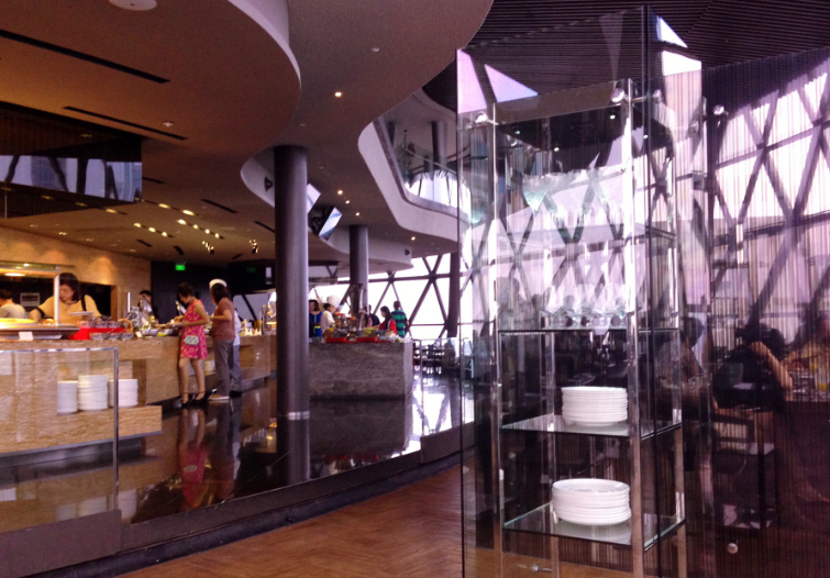 三、旋转餐厅东方明珠广播电视塔的空中旋转餐厅坐落于东方明珠塔267米上球体,营业面积为1500平方米,可同时容纳350位游客用餐。它以得天独厚的景观优势、不同凡响的饮食文化、宾至如归的温馨服务,傲立于上海之巅。