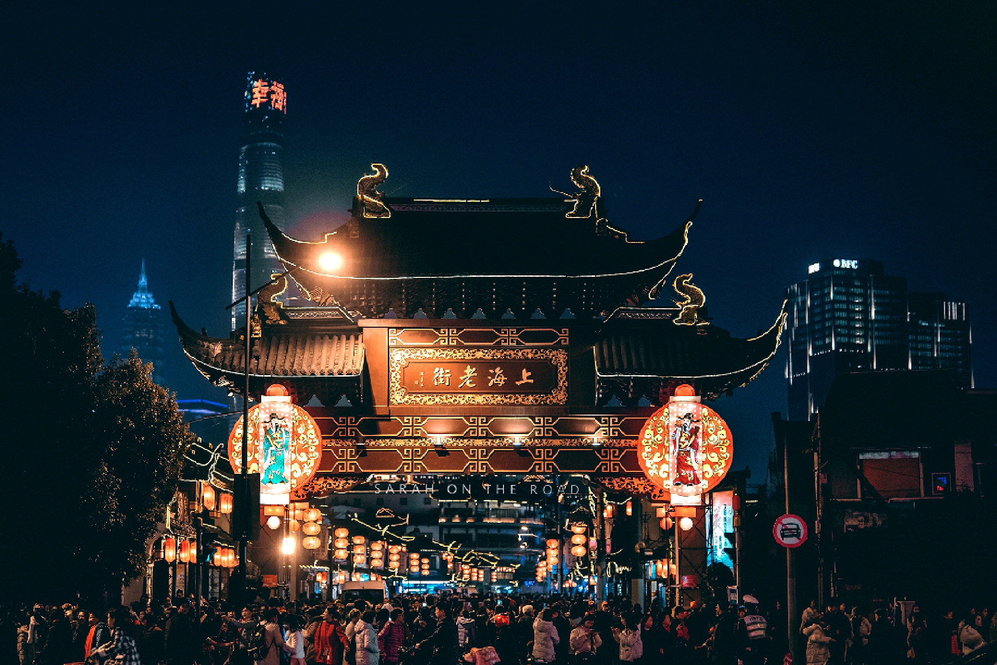 上海城隍庙白天看景,晚上看灯。