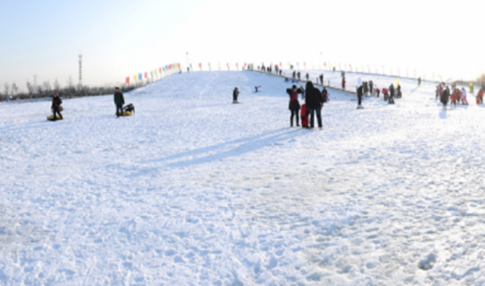 三、古运河滑雪场古运河滑雪场占地50亩,造雪面积达到15000平方米;雪场分为初级道区、中级道区、滑圈区和嬉雪区;配有澳大利亚进口雪机6台,匈牙利滑板1000副,道沃雪毯120米,天津滑圈200个。