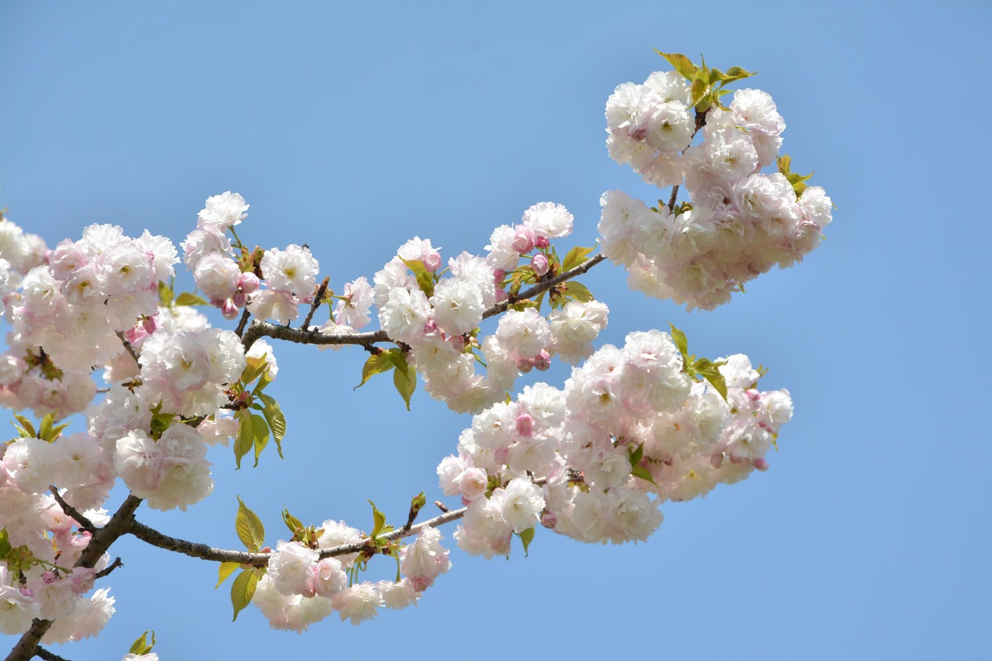 白妙:顾村公园姿态最美的樱花,仅此一株,与枝垂樱一样属于公园的“一级园宝”,花纯白色,近先叶开放。