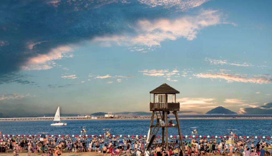 采用圈水隐堤、沉泥碧水的技术,将浑浊的海水和滩涂变成水清沙细的“碧海金沙”。届时人工沙滩的总面积将达到30平方公里,像这样的人工海滩建设,国内尚无先例。