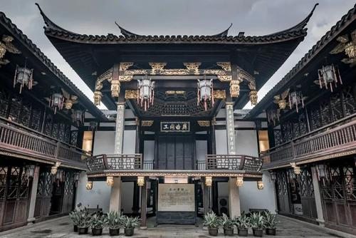 商船会馆是上海最早成立、规模最大的商船业主同业会馆。建于清康熙五十四年(1715)。由上海和崇明籍沙船商“为敦乡谊、相同帮”而成立。乾隆、嘉庆年间扩建,光绪八年(1882)重修。同治初年,曾作为在南市筹办江南制造局(今江南造船厂)办事处。该建筑群坐西朝东,砖木结构。现存主要建筑有砖雕门楼、大殿、戏台和清乾隆石碑,建筑占地面积793平方米,分布面积2341平方米。门楼高5米、阔16米,由清水方砖砌筑,雕有“商船会馆”字样。大殿歇山顶,雕梁画栋,南墙上嵌有清代石碑一块。殿前为戏台,上有八角形漆画藻井。1987年11月17日公布为上海市文物保护单位。