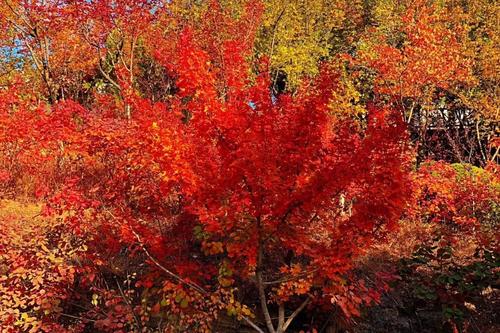 5.蒙山国家森林公园的红叶名声可不小。每到秋天,蒙阴蒙山国家森林公园便成了彩色的海洋。