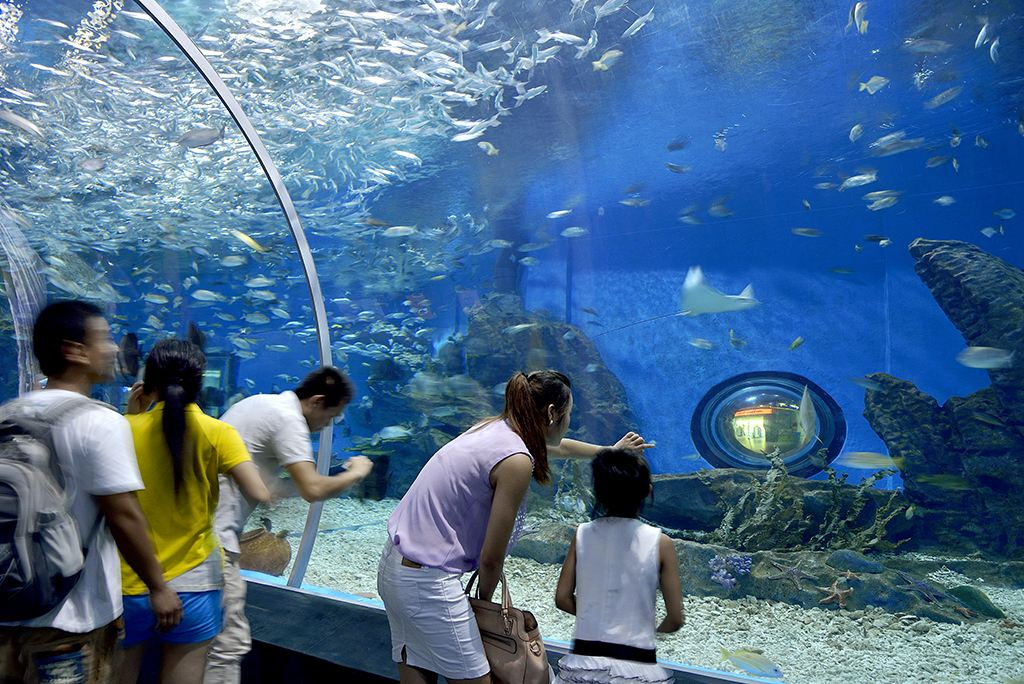 蓬莱海洋极地世界建有海底世界,游人通过一条一百多米长的海底隧道,观看海底世界中的近千种海洋生物。走在海底隧道中,仿佛置身于蔚蓝色大海之中,美丽的海底世界尽收眼底。那些五颜六色、奇奇怪怪的海洋生物,近在咫尺,似乎触手可及。