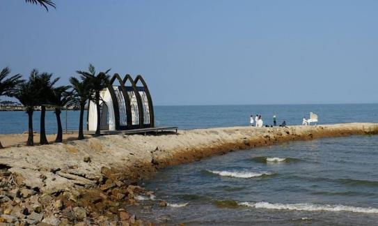 二、万平口海滨风景区“旅游来日照,必到万平口”,景区内万平口海水浴场,是日照市内最火热的浴场之一。沙滩海岸线很长,涨潮时海水很蓝。不过沙子比较粗,且由于免费开放,每年旺季人都非常多。潮汐塔是景区标志性建筑,在塔顶可以俯瞰整个景区和大海。景区适合玩水上项目,海边可以坐快艇、乘皮划艇,甚至参与冲浪等活动。