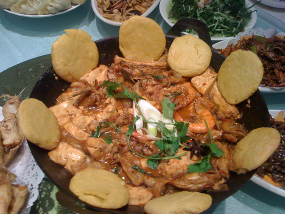 咸鱼饼子是从沿海的渔民流传下来的,出海吃咸鱼饼子图个省事、方便。新鲜的海鱼,在海边晾干,烤得外焦里嫩,和香喷喷的玉米面饼子一起下肚,饼子焦、脆、香,咸鱼鲜、嫩、咸。